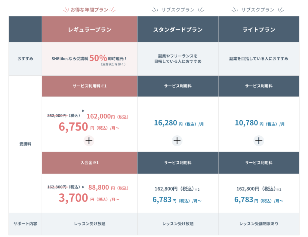 SHElikesには3つの料金プランがあります。